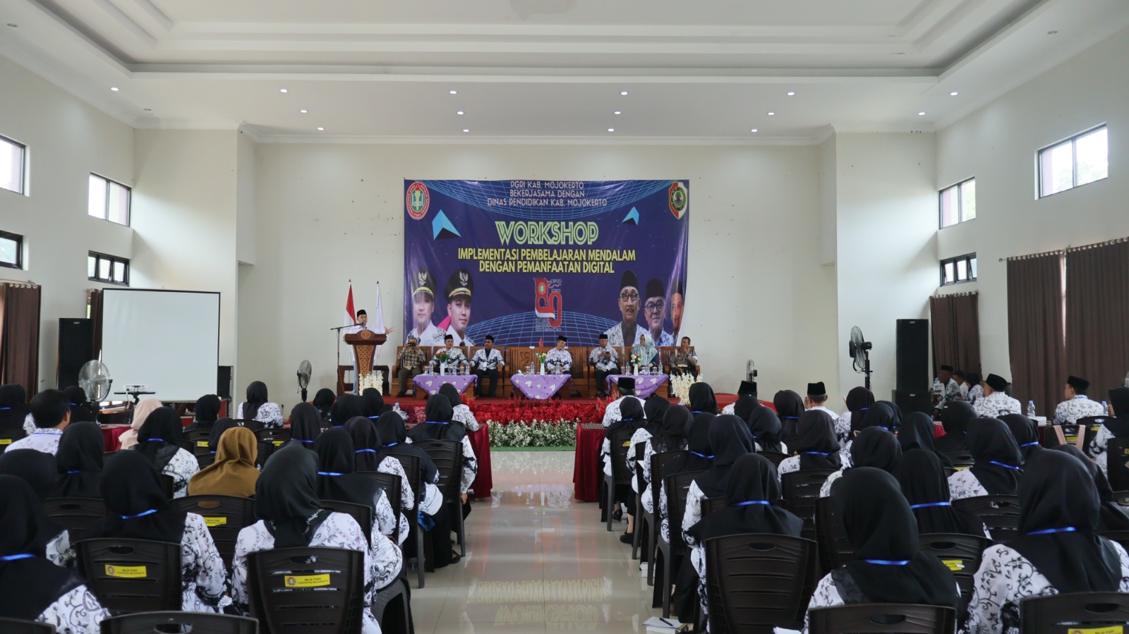 Kegiatan yang diinisiasi oleh Persatuan Guru Republik Indonesia (PGRI) Kabupaten Mojokerto ini digelar di Gedung PGRI Sooko dan dihadiri oleh sedikitnya 450 guru dan tenaga pengajar.