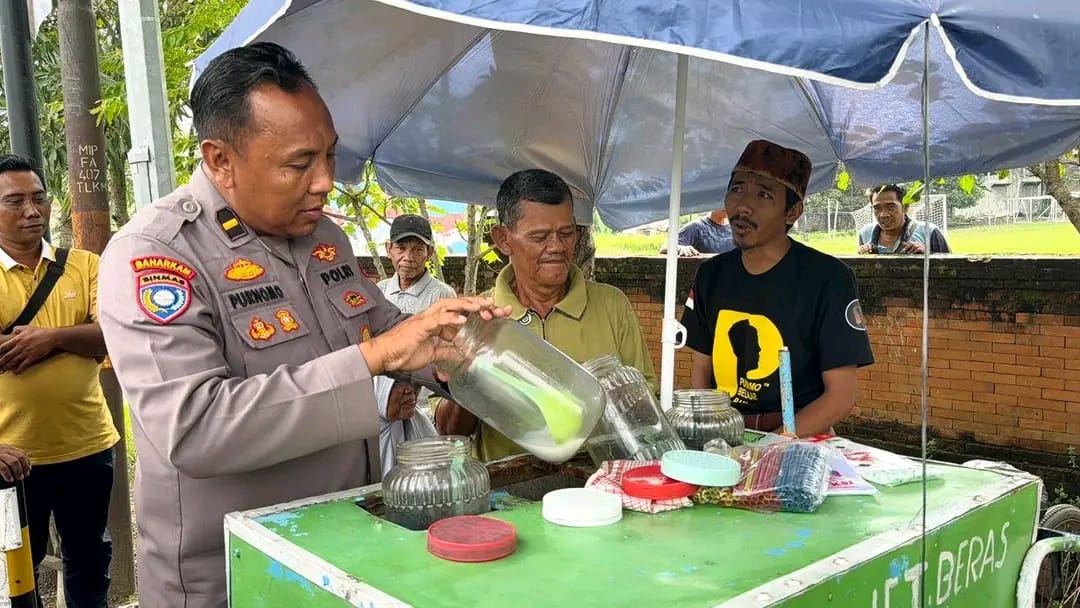 Infomojokerto.id – Slamet Riadi, seorang pedagang es dawet beras di depan Lapangan Jetis, Mojokerto, mendapatkan dukungan dari Pak Purnomo, seorang polisi yang dikenal dengan aksi sosialnya.